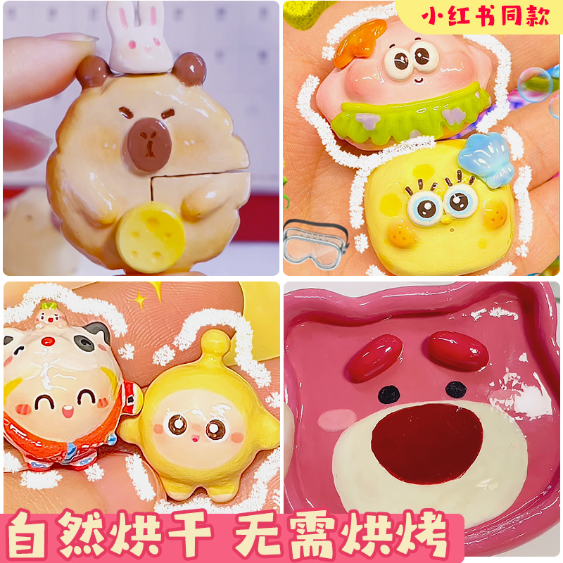 免烤石塑粘土diy材料包无毒可塑石膏时速儿童白色塑形手工泥软陶