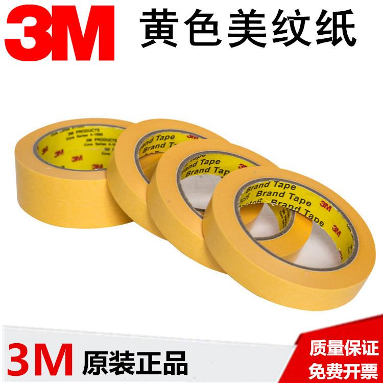 3M原装进口244美纹纸高温黄色无痕胶带烤箱汽车喷漆美术画画遮避