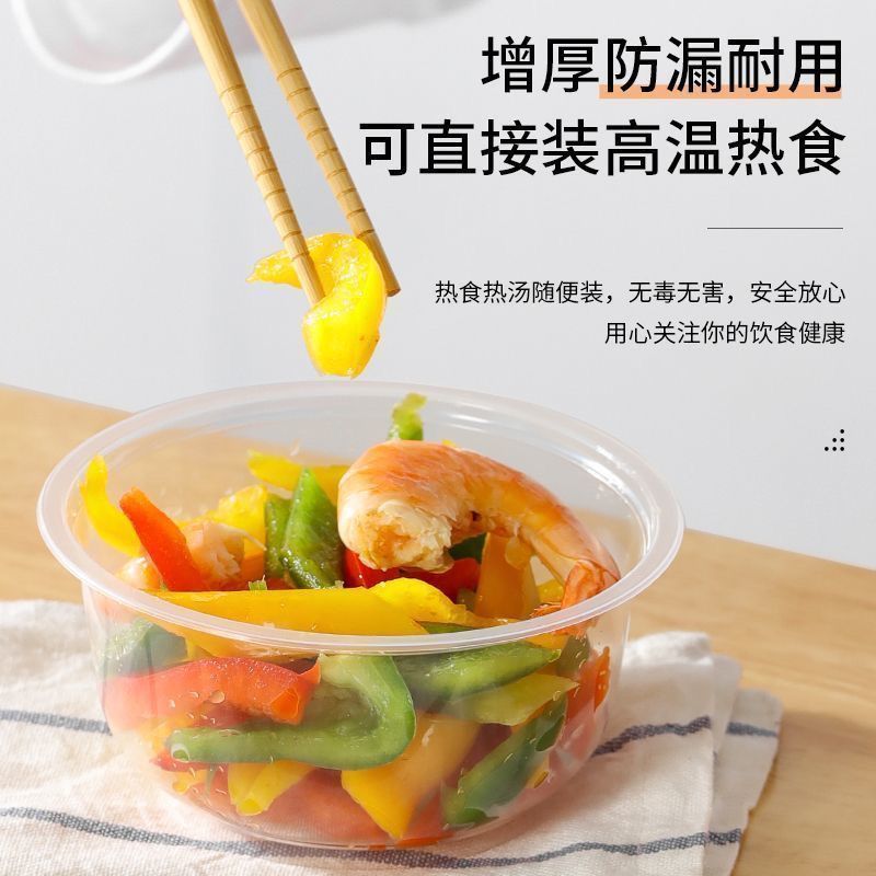一次性碗塑料家用小碗套装圆形带盖饭盒打包餐盒餐具冰粉商用碗筷