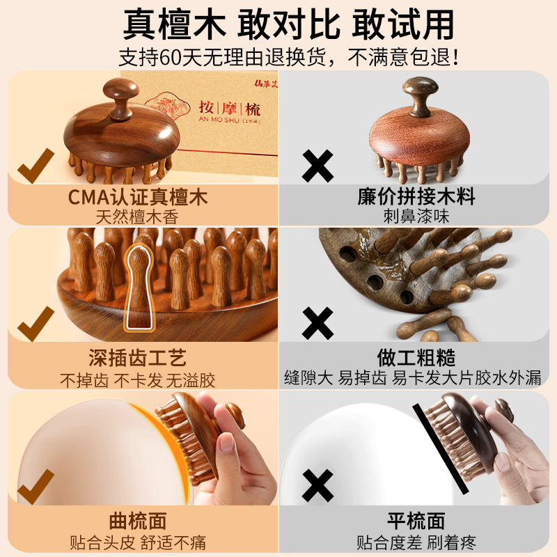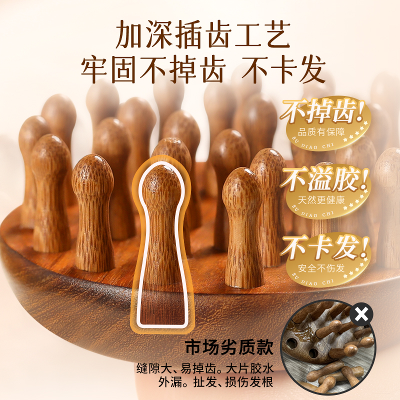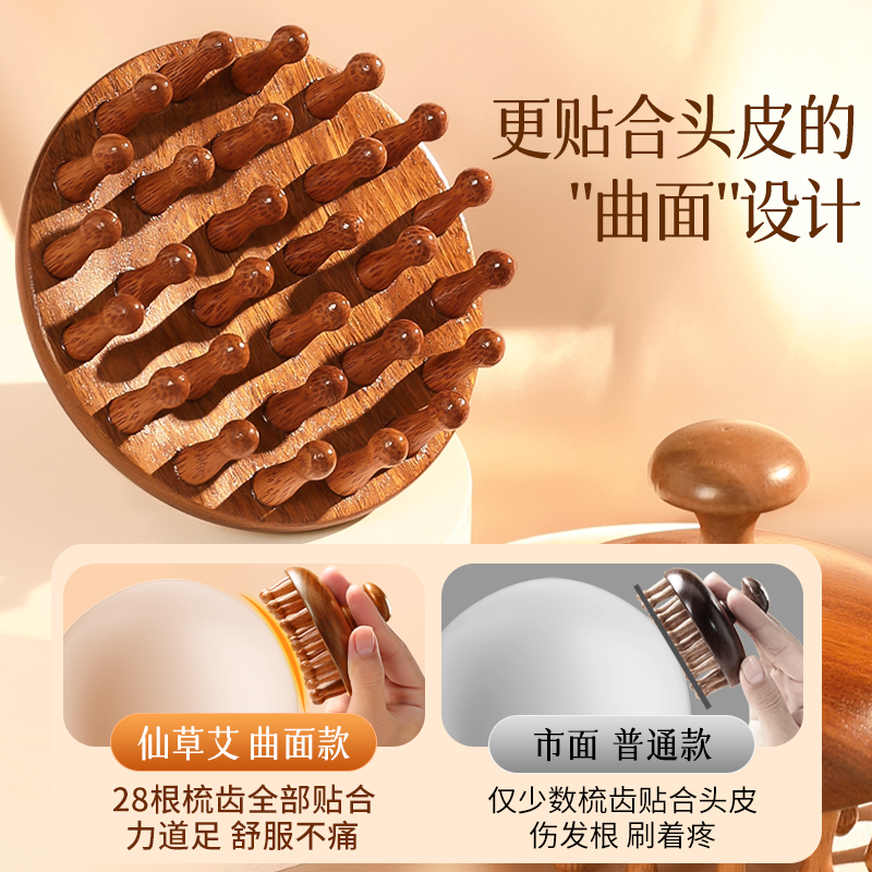 檀木圆盘头皮部按摩梳头疗疼缓解经络梳疏通神器抓头灵魂提取28爪