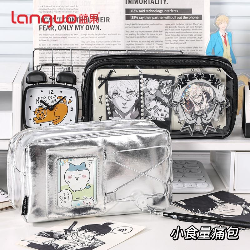 速发皮面痛笔袋透明双面笔袋皮质2025新款痛包小学生大容量小
