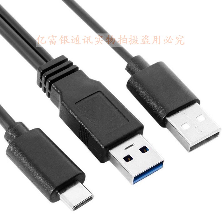 移动硬盘的数据线typec接口转手机双头USB充电连接二合一辅助供电