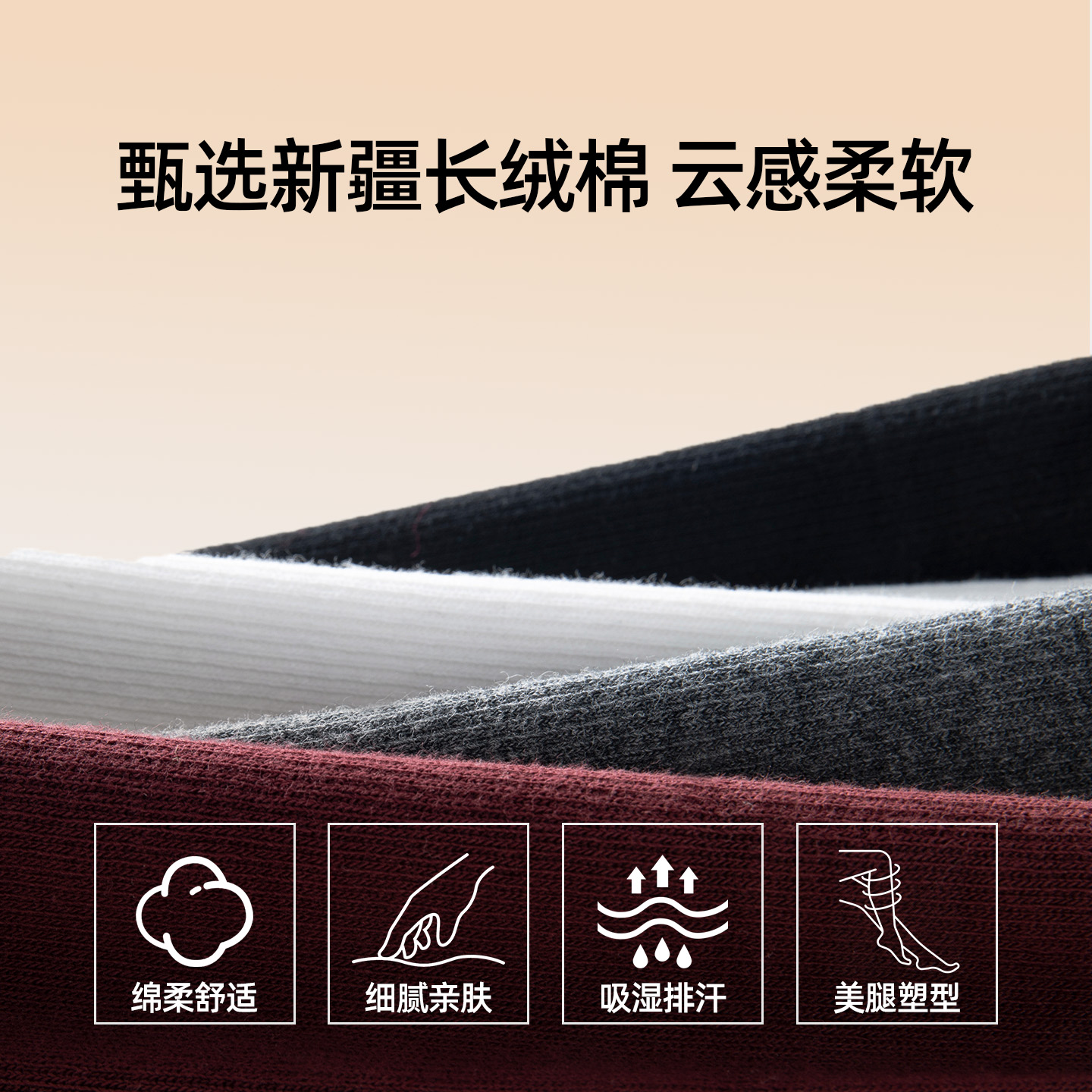 5双装 往往精梳棉质3A抗菌女士袜子中长筒袜纯色休闲男袜秋冬季