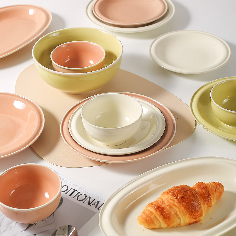 【可盘可碗】5色陶瓷盘子家用菜盘深汤盘加厚加深圆形餐具水果盘