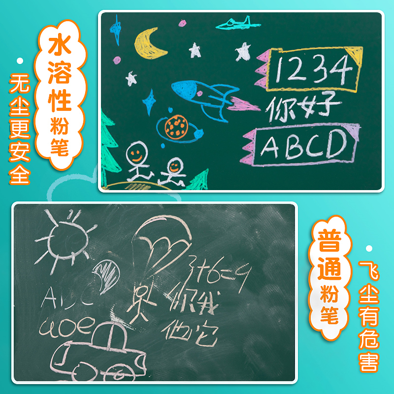 36色水溶性无尘粉笔固体儿童专用无毒无味无粉尘易擦黑板报彩色鲜艳可装笔套夹白色48色水性粉笔家用水洗可溶