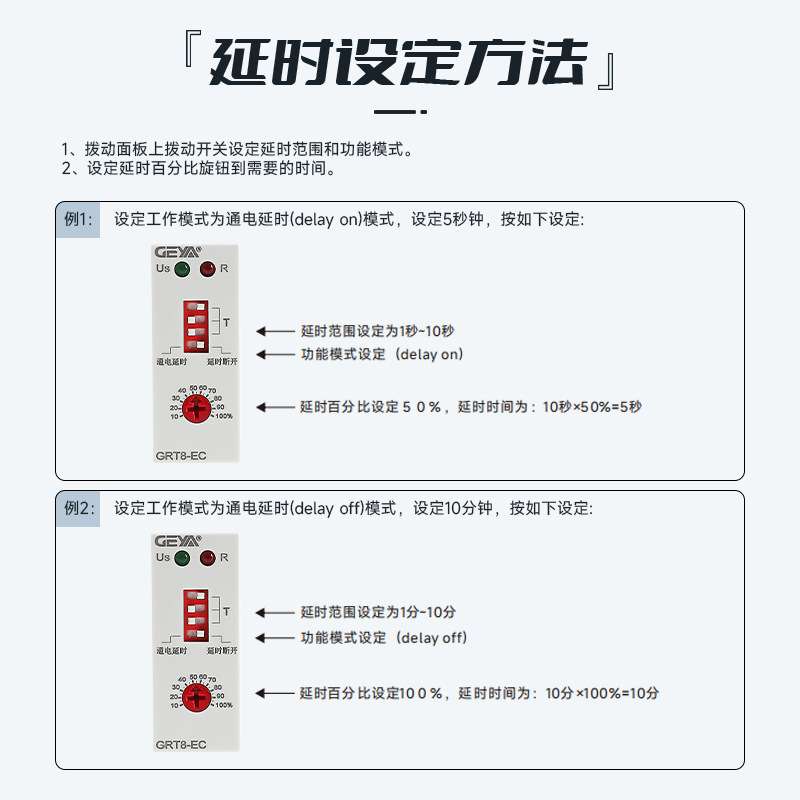 GEYA格亚 GRT8-EC通电延时时间控制继电器汽车开关电源计时器220V