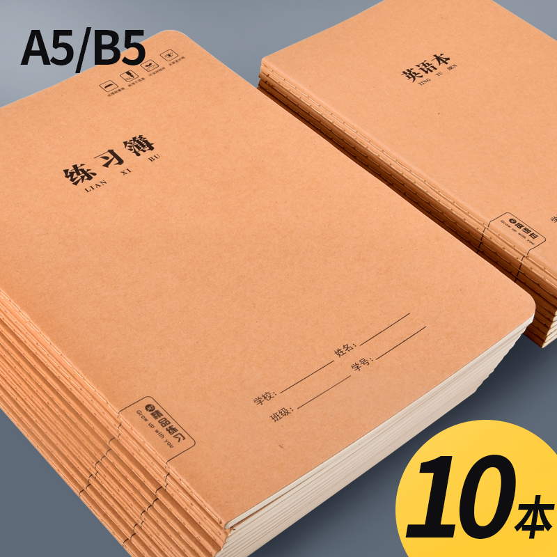牛皮纸作业本16K本子32K加厚练习本英语本车线本语文本簿中小学生