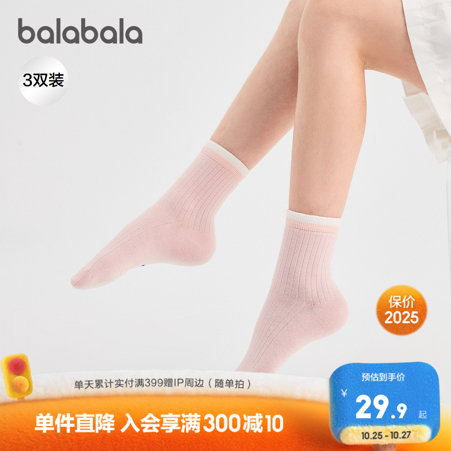 【商场同款】巴拉巴拉女童袜子秋新品儿童中筒袜舒弹不勒脚三双装