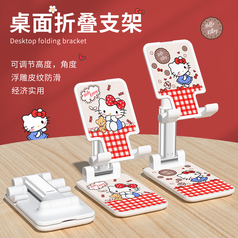手机支架凯蒂猫可爱多功能家用支撑架夹ipad平板网课桌面支架懒人直播看剧kitty猫卡通ins风女生新款便携折叠