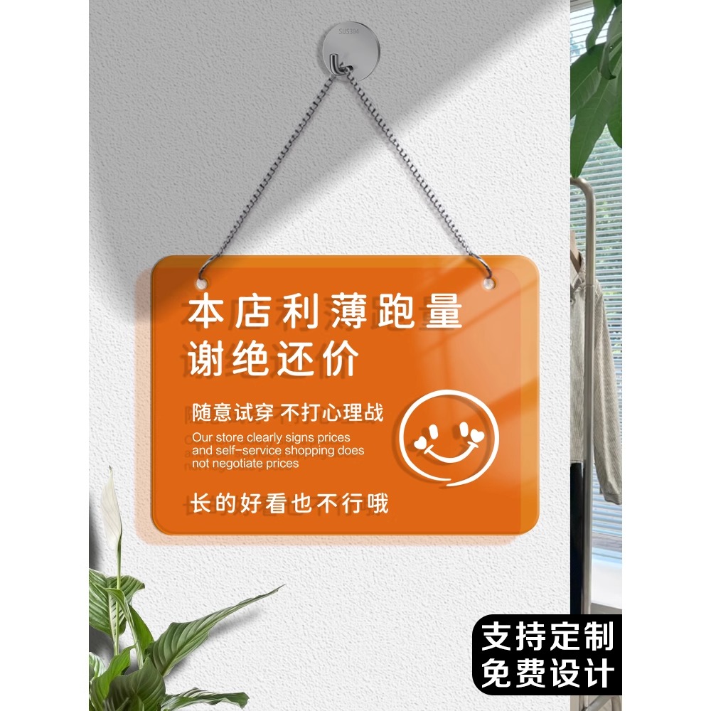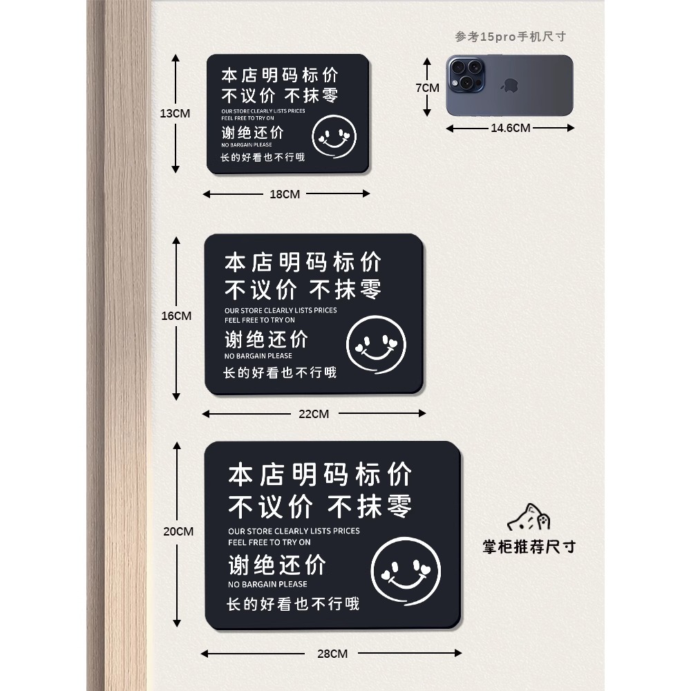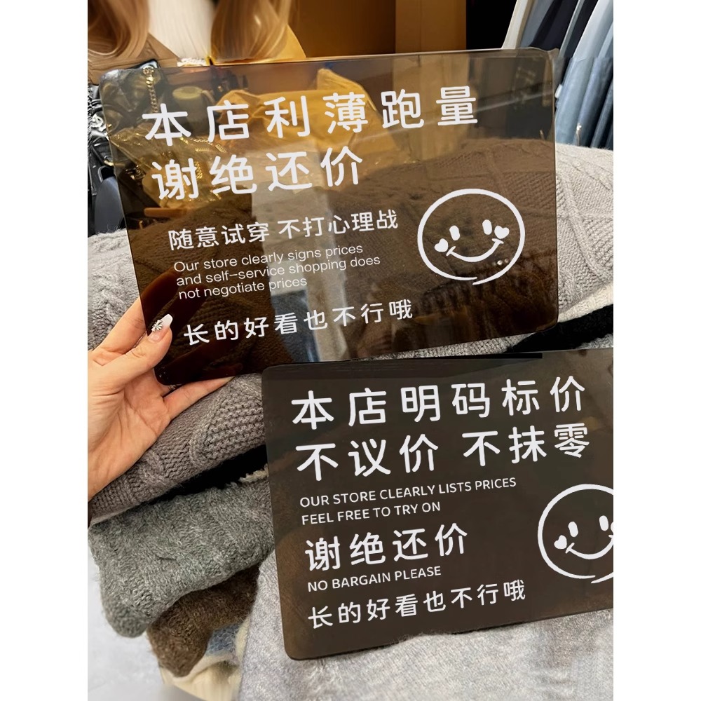 创意亚克力标志明码标价谢绝还价提示牌本店售出商品概不赊账标识牌服装店小本生意不议价讲价告示墙贴纸牌子