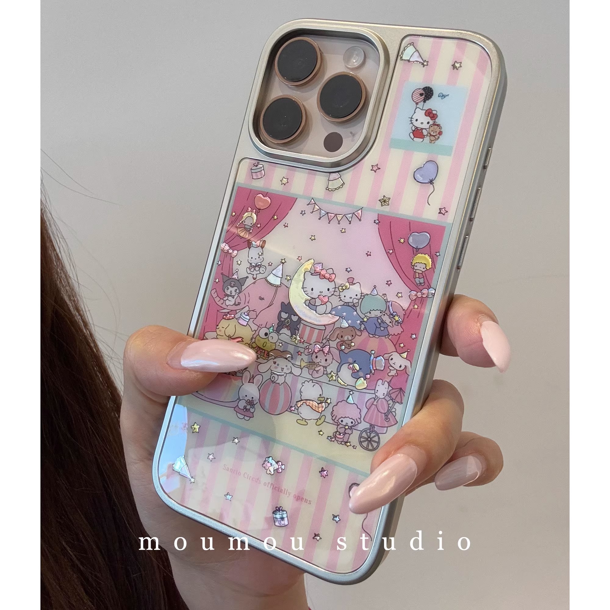 ins可爱粉条纹三丽鸥派对适用iPhone15promax苹果16pro手机壳13防摔141211全包17promax女17pro电镀15pro镭射