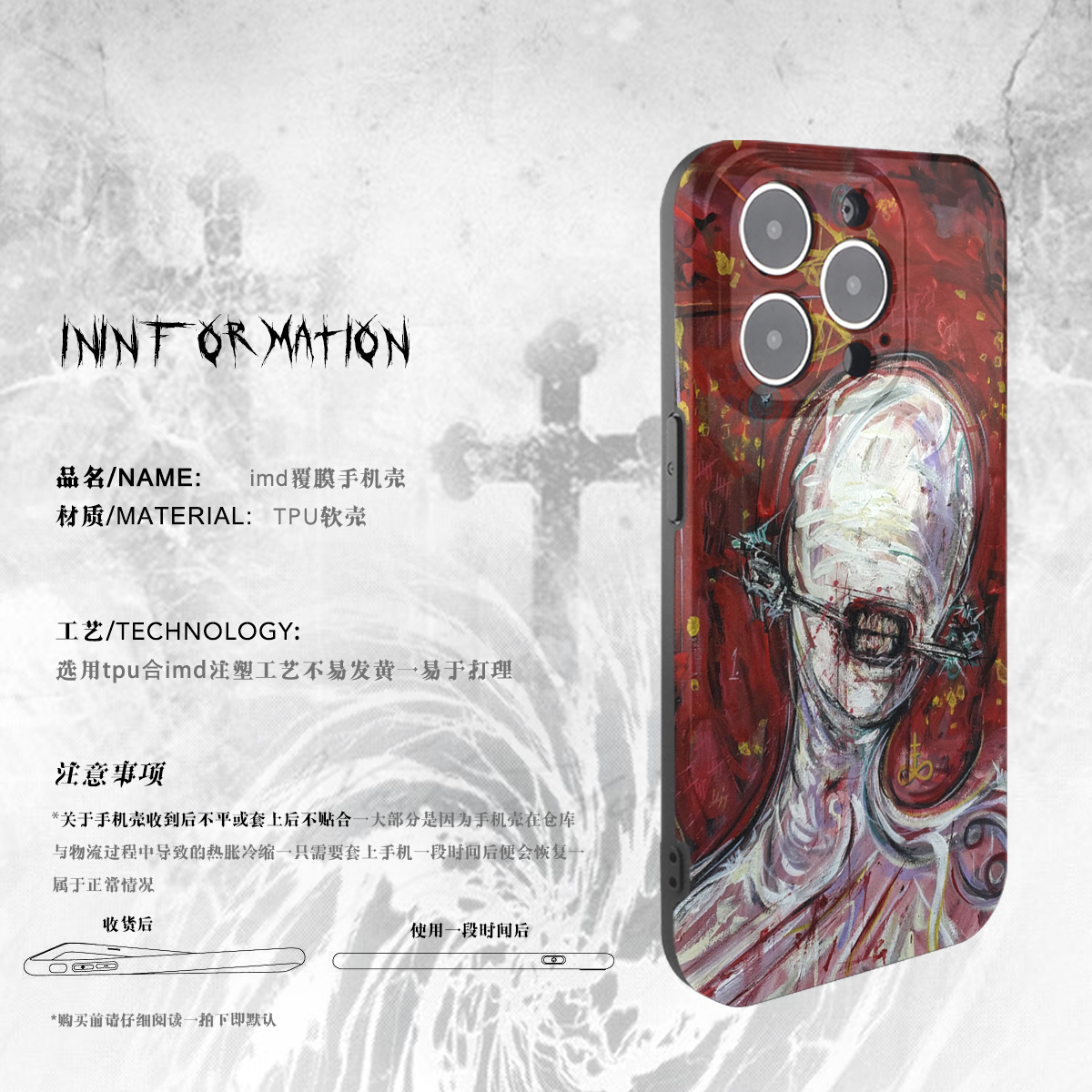 Siouxsie邪典cult恐怖风适用iPhone16pro苹果15promax手机壳14摇滚13/12新款11菲林二合一防摔小米15全包边xr