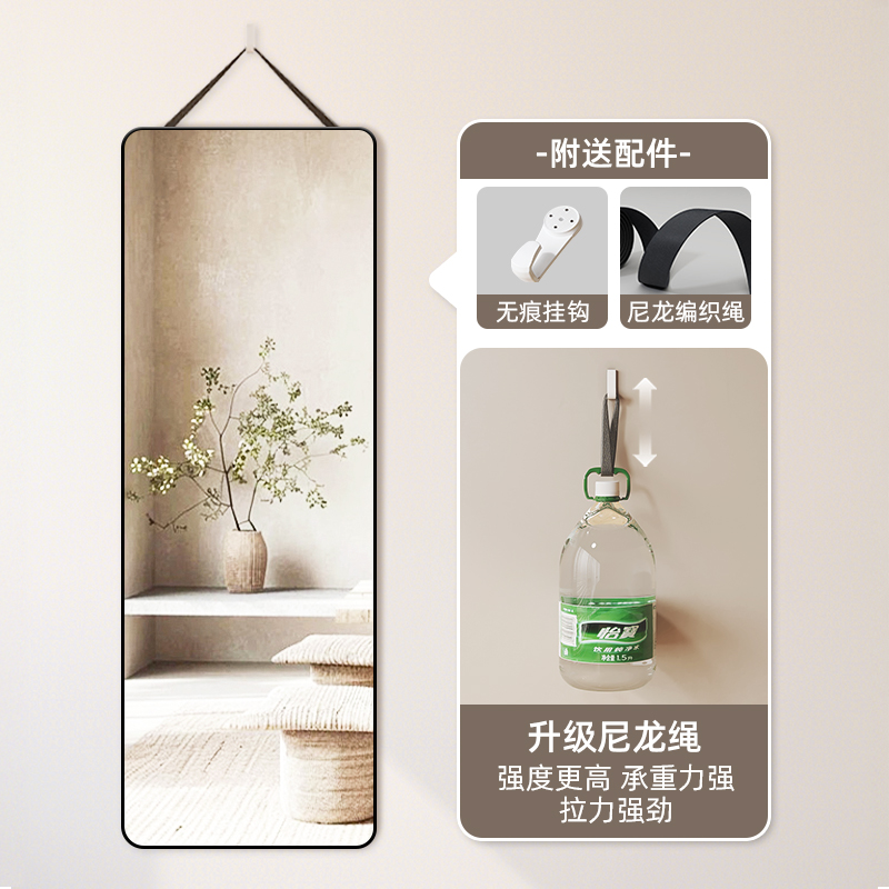 全身镜子贴墙自粘穿衣镜卧室壁挂宿舍落地家用挂绳玻璃挂墙试衣镜