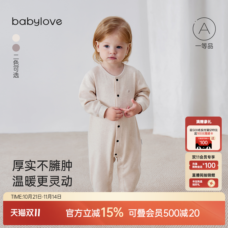 babylove婴儿连体衣秋冬季棉氨弹力哈衣爬服休闲宝宝衣服打底睡衣
