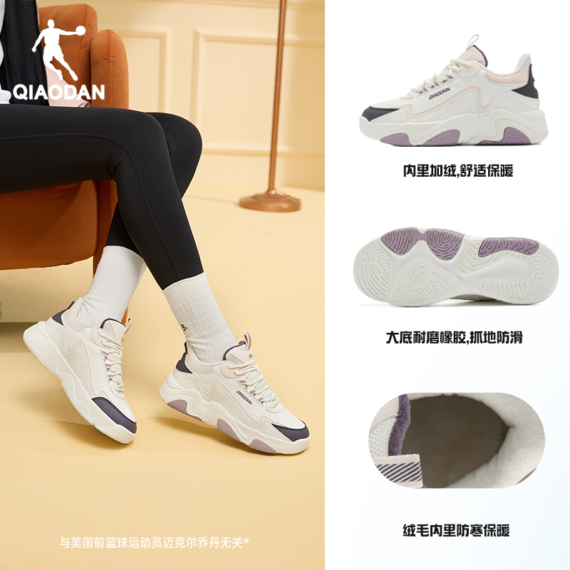 乔丹运动鞋软底加绒鞋子二棉鞋女款2025新款休闲厚底增高板鞋女鞋