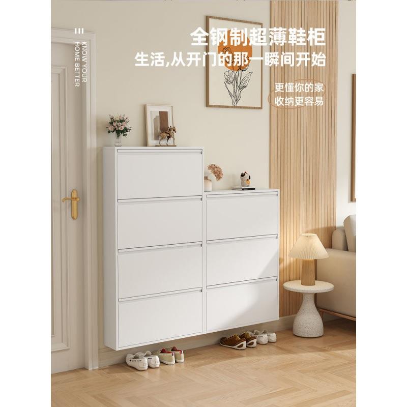 超薄钢制鞋柜家用门口饰品大容量铁皮柜收纳入户玄关多功能翻斗柜