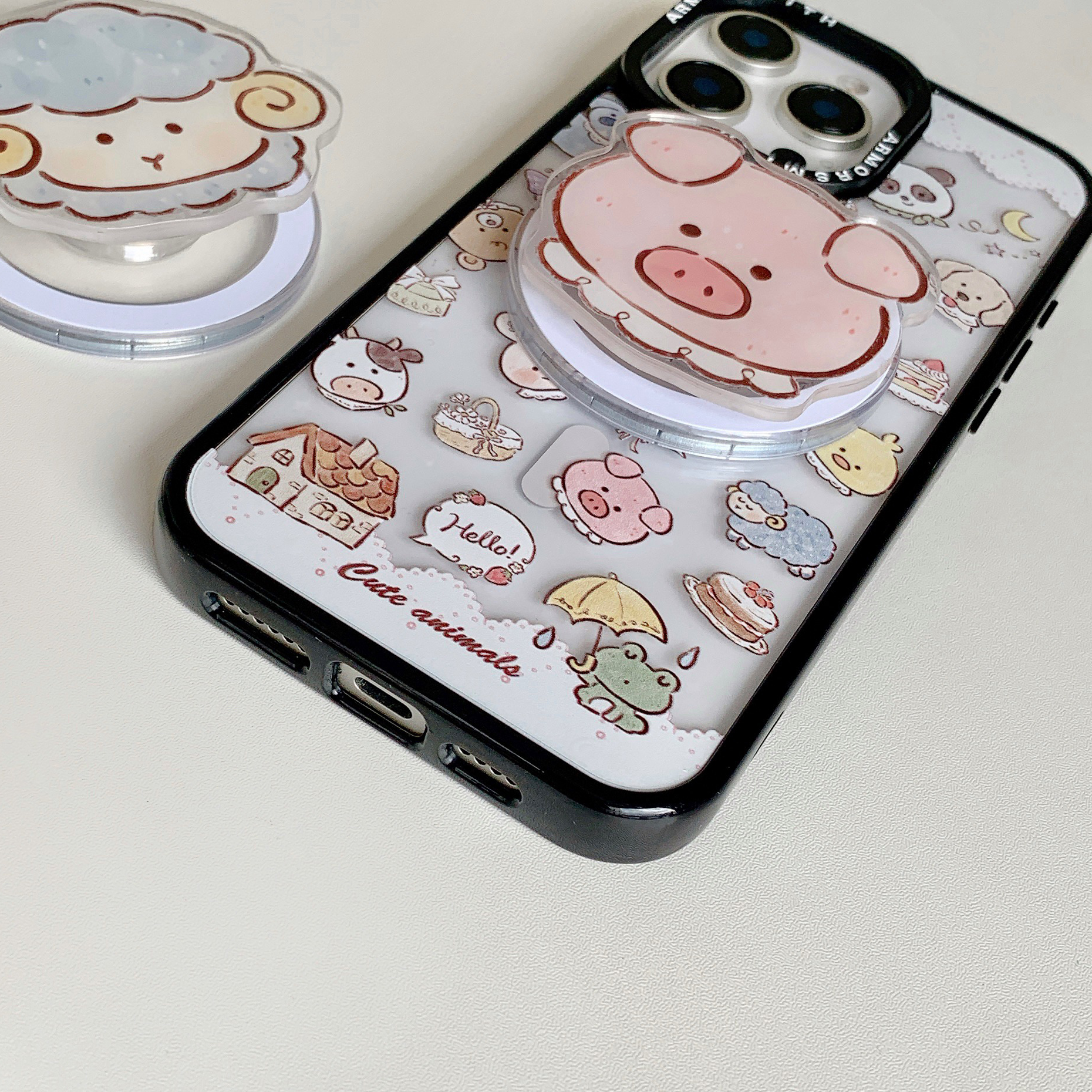 满屏小动物强磁手机壳适用iPhone16pro透明苹果15promax气囊磁吸支架14/13防摔12pm无线充电11萌趣plus卡通套