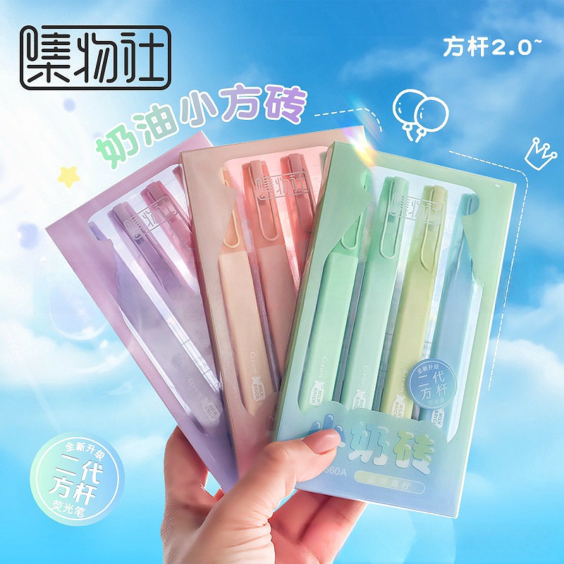 集物社小奶砖荧光笔超软头柔和护眼色荧光笔方杆二代小奶砖手账笔标记笔套装12色斧型斜头笔尖学生做笔记手账
