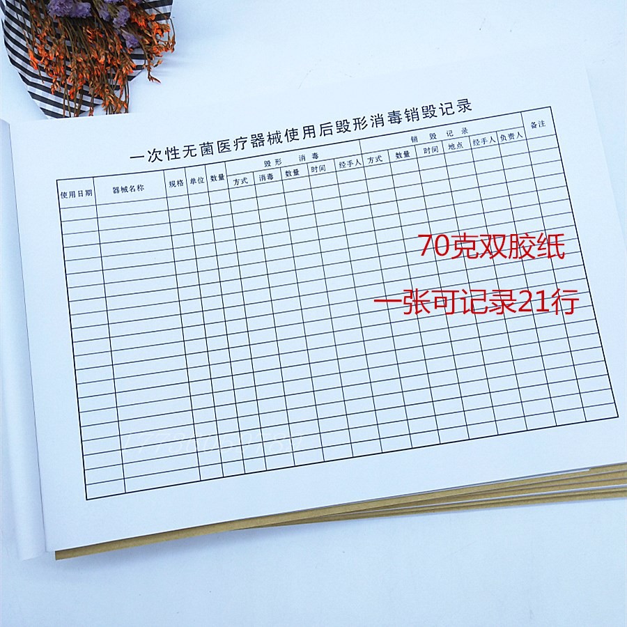 一次性无菌医疗废物处理器械毁形消毒登记销毁记录本门诊登记薄簿