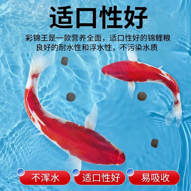 彩锦王锦鲤饲料鱼粮育成小颗粒不浑水色扬螺旋藻锦鲤鱼食锦鲤饲料