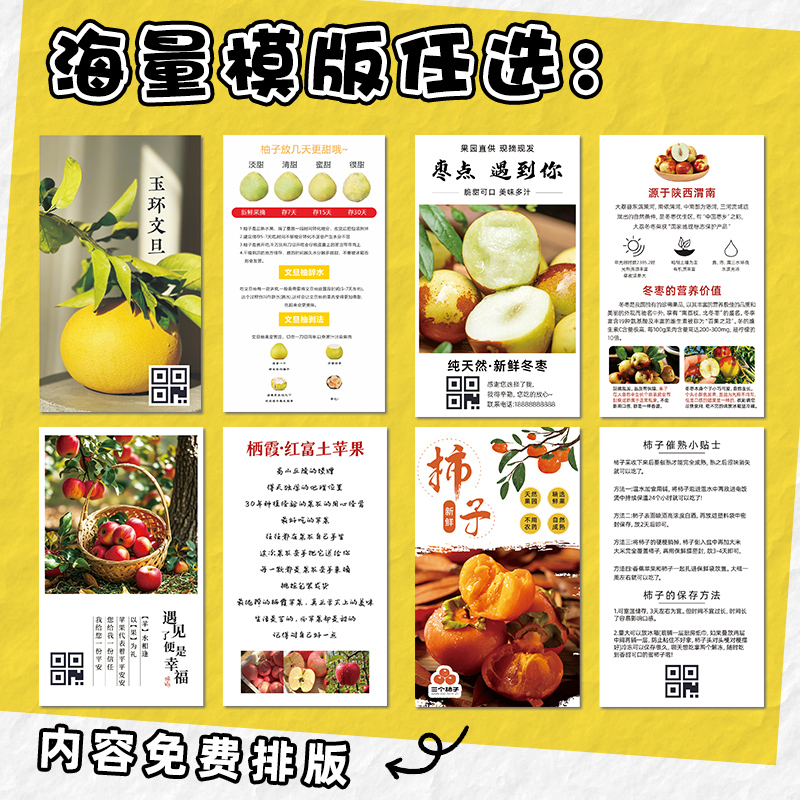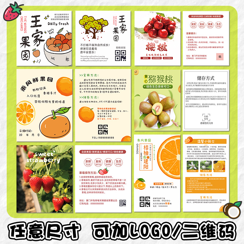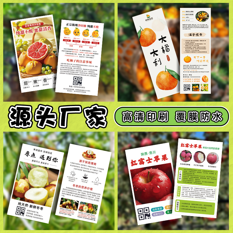 水果卡片定制柚子脐橙保存温馨提示卡纸柿子冬枣食用说明名片硬卡苹果礼盒介绍宣传贺卡电商农产品售后感谢卡