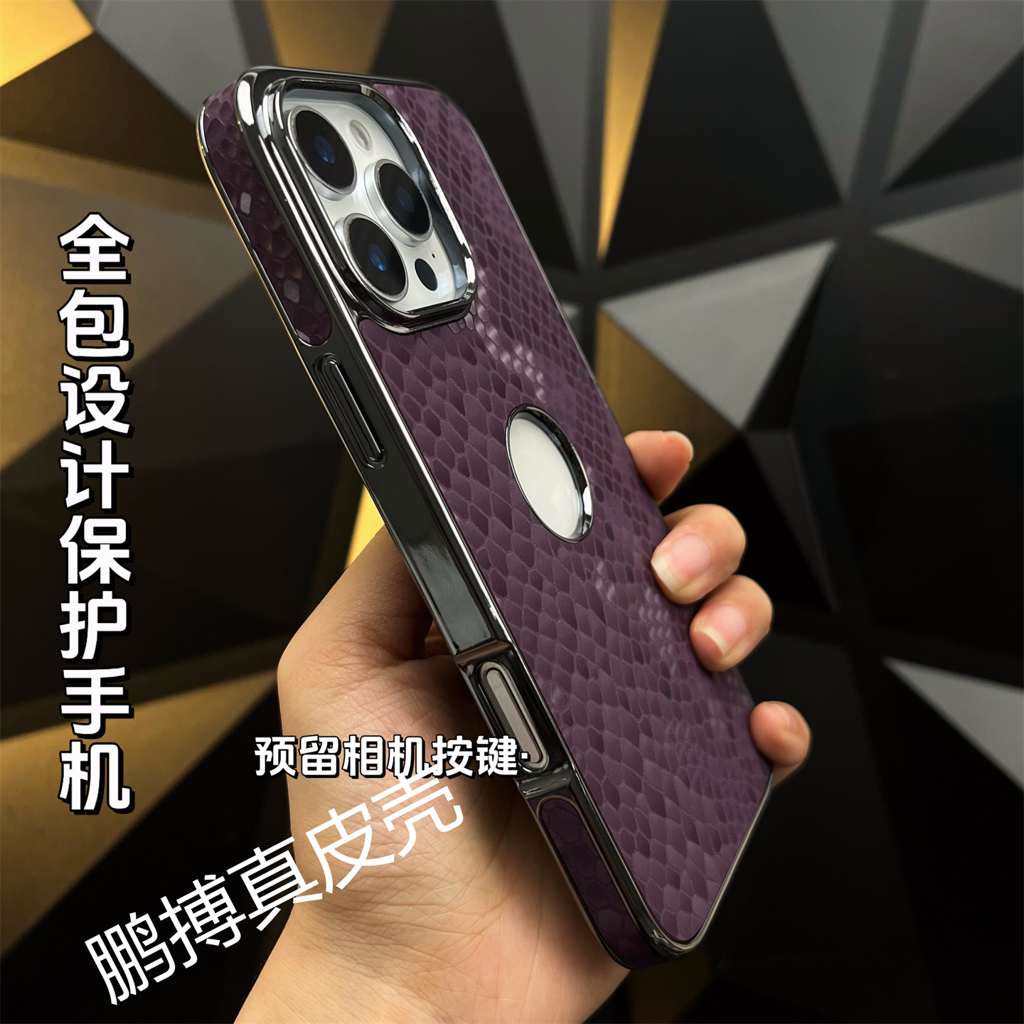 适用iphone16真皮手机壳苹果15promax头层牛皮3D压印龙鳞纹单后壳14pro超薄轻奢外壳带磁吸无线充新款时尚壳