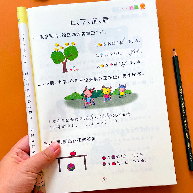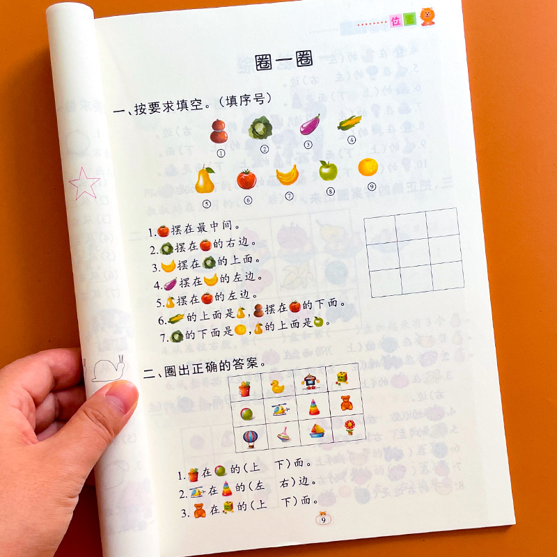 小学生一年级认识图形和位置数学练习题顺序空间立体几何图形方向前后左右看图列算式解决问题专项练习册
