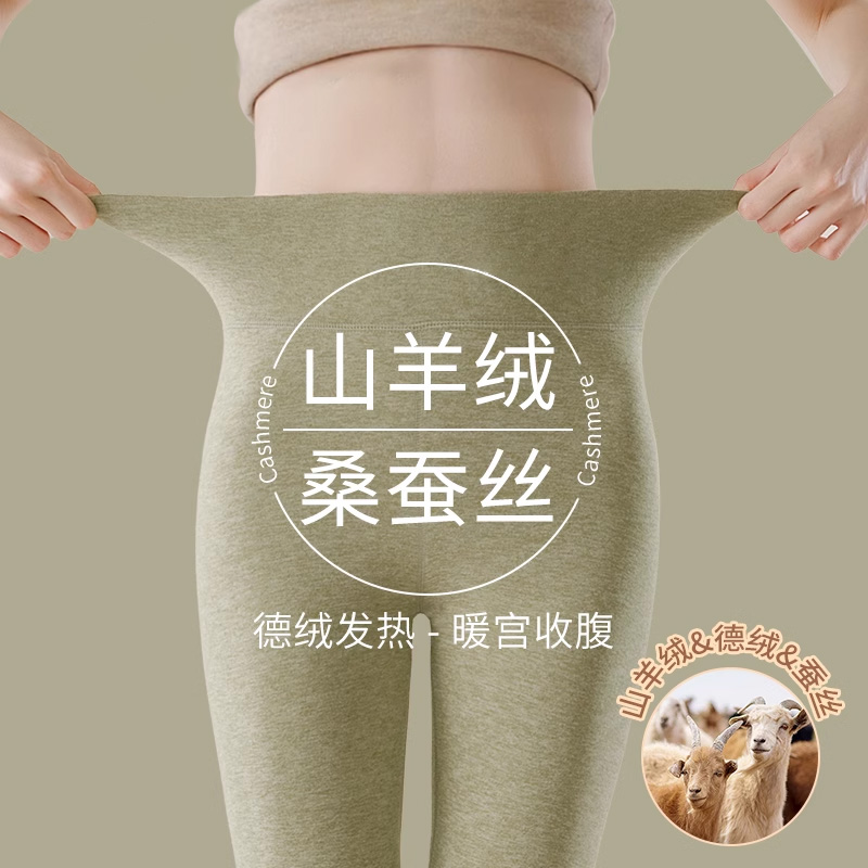 羊毛蚕丝秋裤女加厚加绒德无痕发热高腰保暖裤女羊毛棉裤打底裤冬