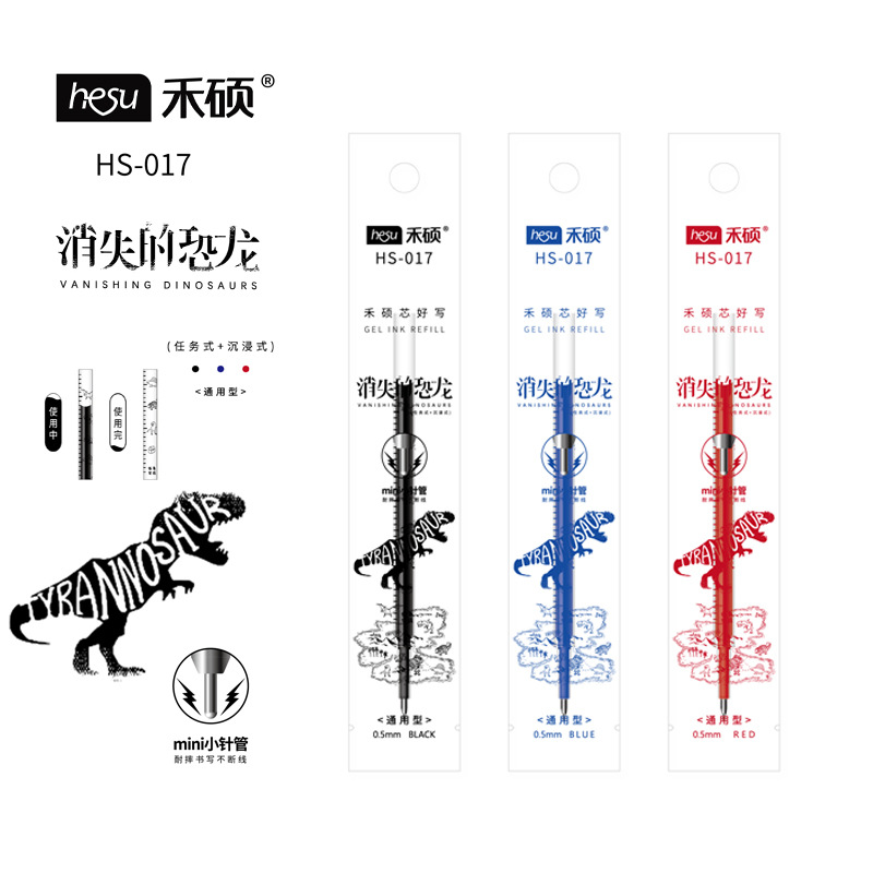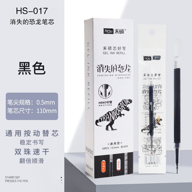 禾硕消失的恐龙按动按压式中性笔心水笔芯签字笔替芯黑色蓝色红色0.5mm小针管笔头双珠速干顺滑黑芯红芯蓝芯