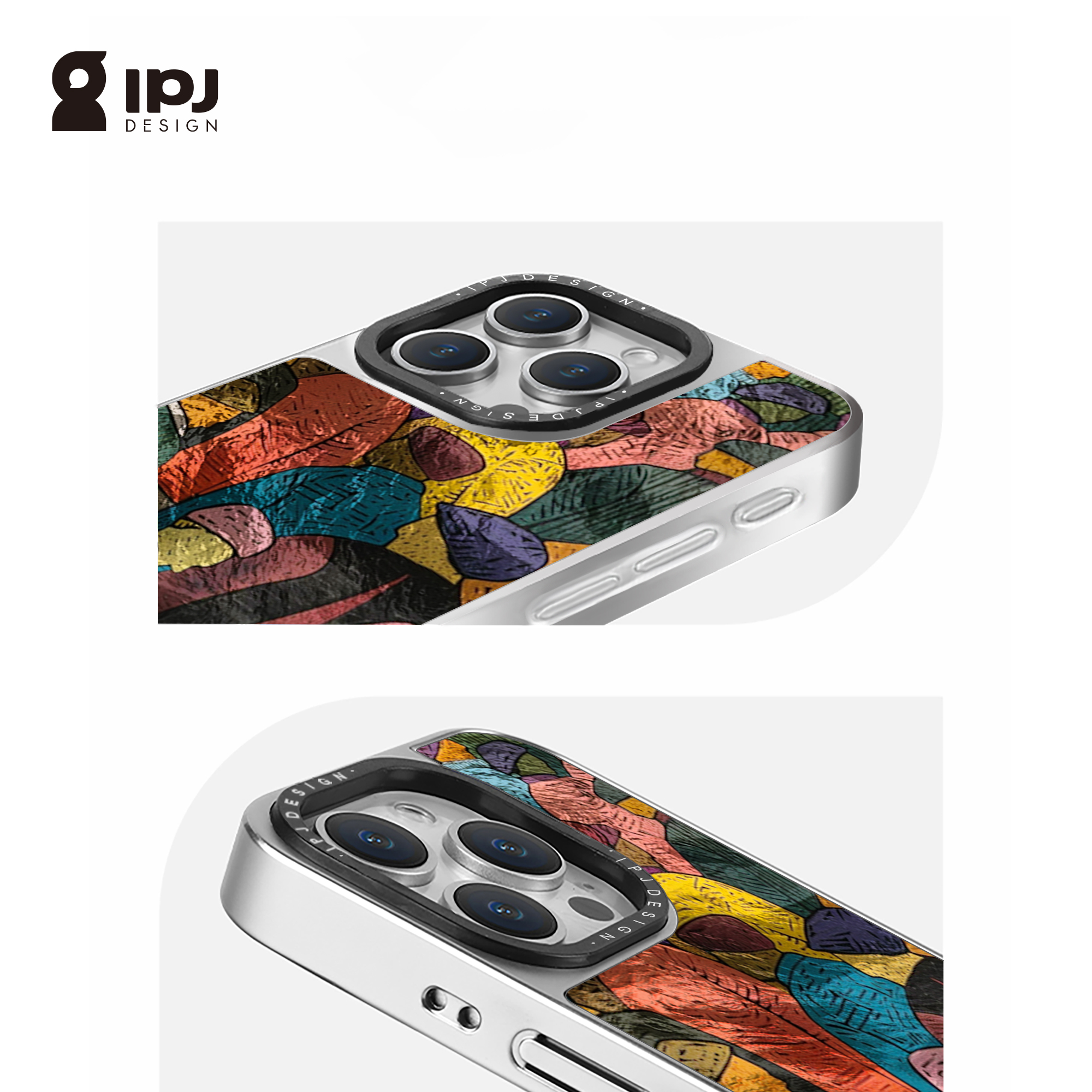 IPJ高级感电镀银油画人群冰川纹磁吸壳17苹果15promax手机壳不撞壳iphone16Plus13个性复古12防摔14潮牌网红