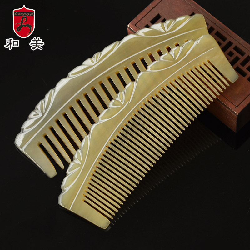 和美牛角梳多款无手柄雕刻牛角梳减少静电雕花半月牛角梳