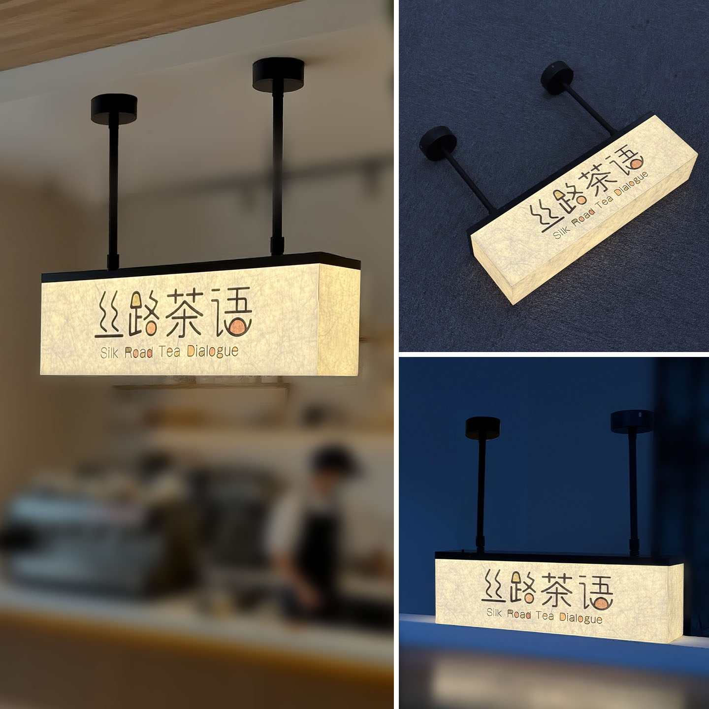 餐饮店网红双面通体发光灯箱招牌奶茶门店咖啡厅火锅店吊挂指示牌
