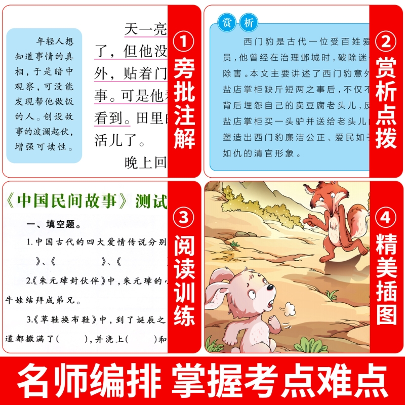 全套4册中国民间故事五年级上册快乐读书吧必读正版的课外书田螺姑娘欧洲非洲列那狐的故事五上阅读书籍人教版书目5神话寓言古诗