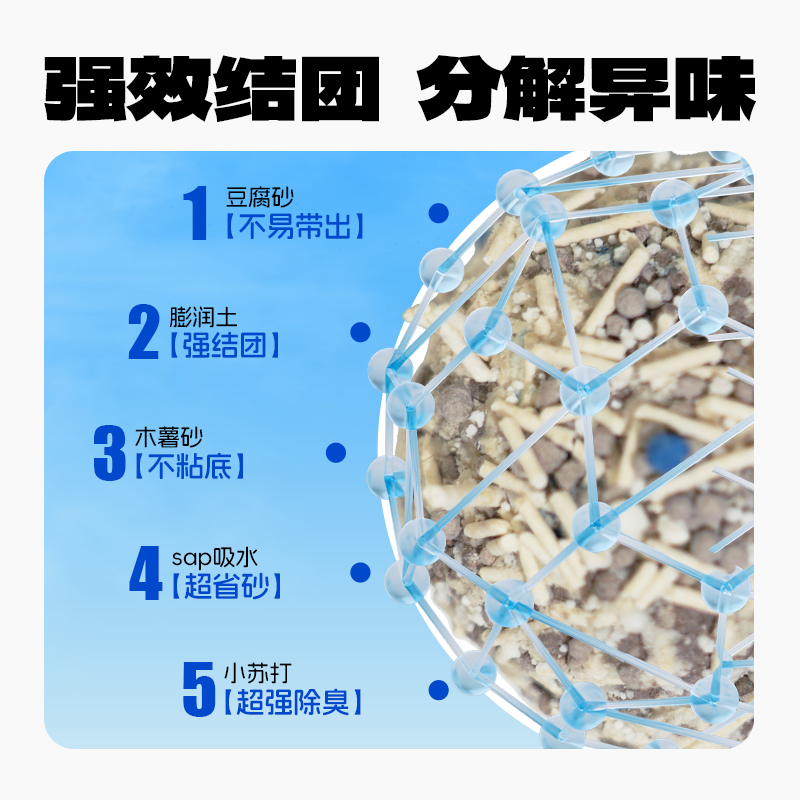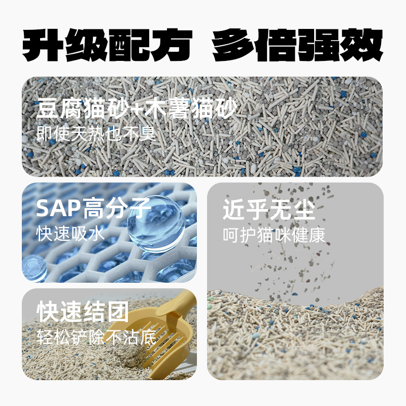 【5合1植物混合猫砂】除臭豆腐木薯猫砂混合砂低尘强吸水不粘底