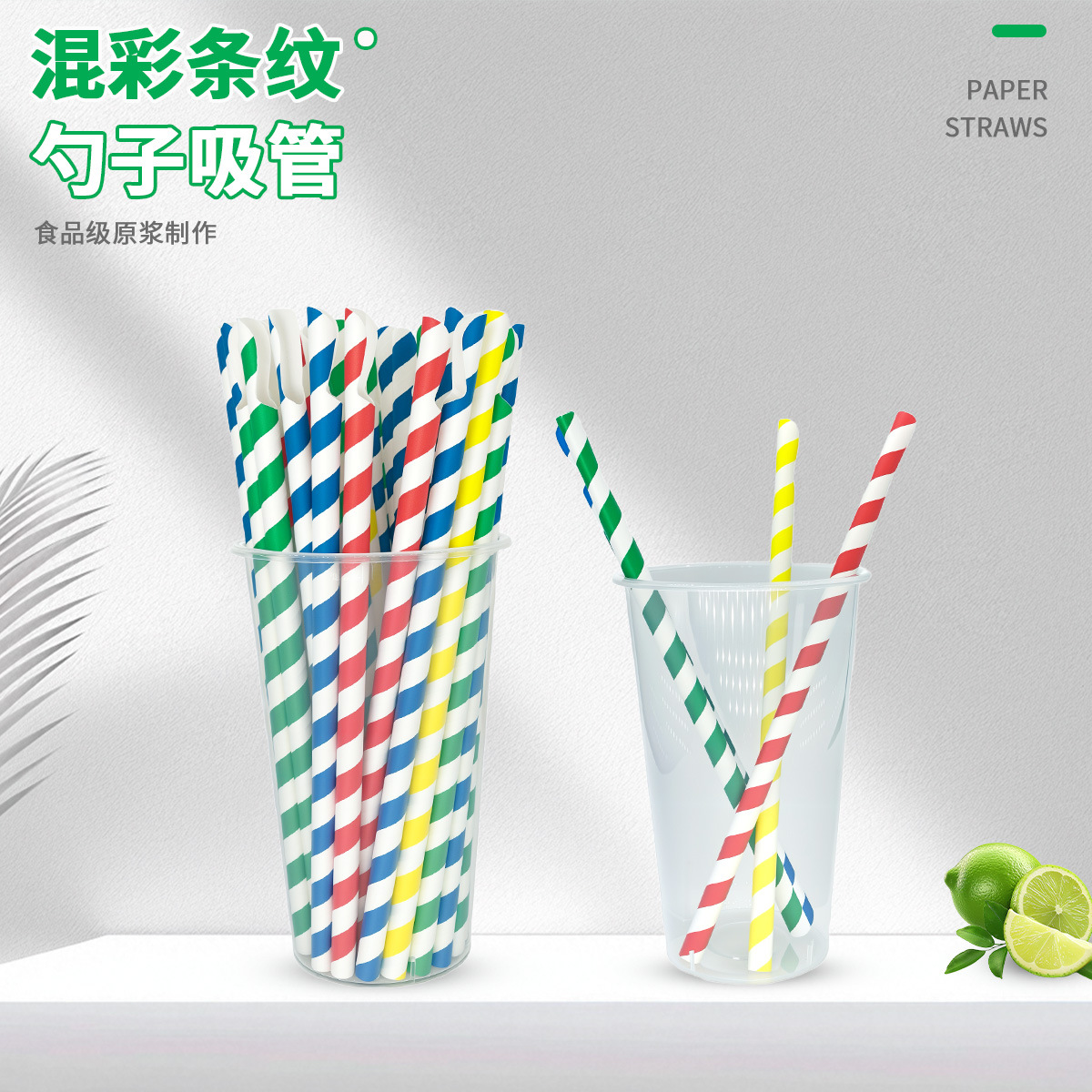 勺子吸管彩色可降解纸吸管一次性果汁饮料奶茶吸管食品级纸吸管