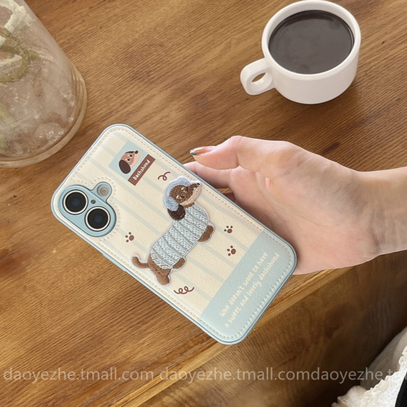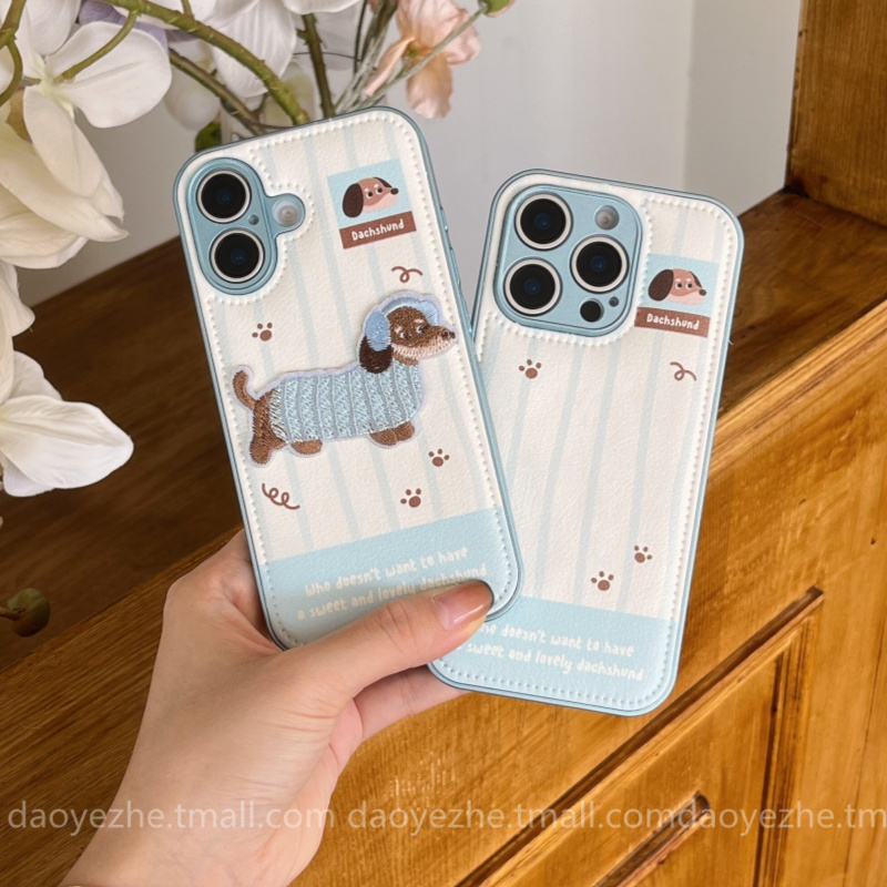 秋冬蓝条纹腊肠狗适用华为mate70手机壳Pura80/P60新款nova14/13可爱P50e荣耀400高级感8防摔12女11皮质90pro