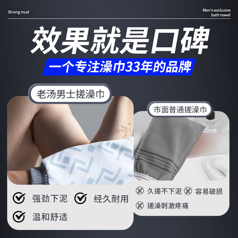 老汤搓澡巾男士专用搓澡神器强力搓泥大号特粗砂高质量后背洗澡巾
