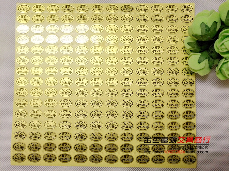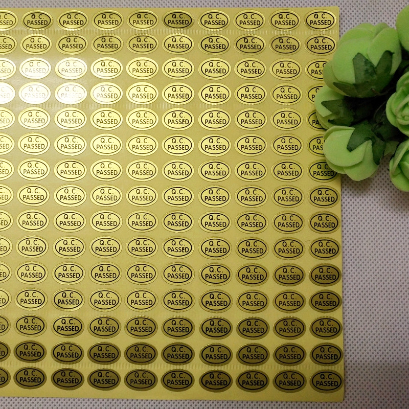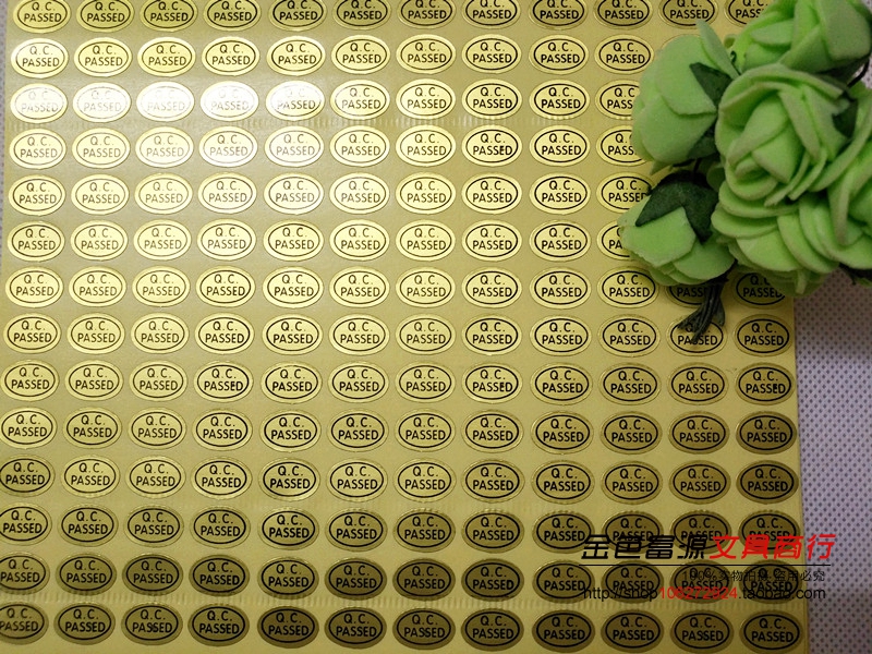 Q.C.PASSED椭圆形 不干胶标签贴纸 质检标 检验通过标签金底黑字