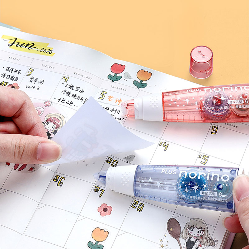 日本PLUS普乐士点点胶可换替芯双面胶带可爱少女修正带ins大容量