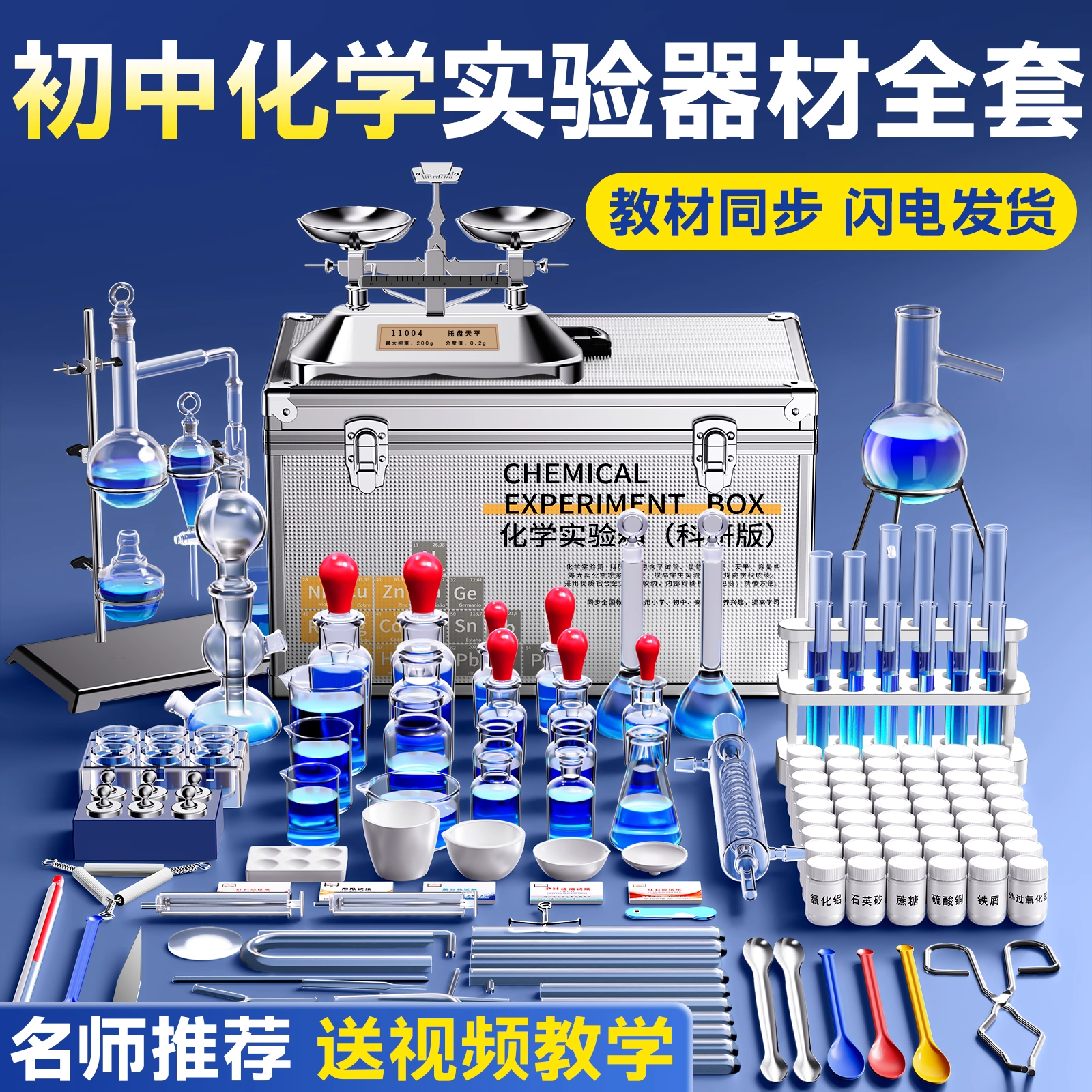 高中初中化学实验器材全套初三九年级化学实验套装试剂烧杯试管铁架台玻璃烧杯制取氧气蒸馏提纯实验装置箱