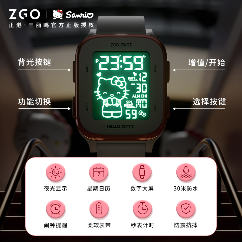 正港ZGOx三丽鸥hellokitty手表女款小学生只看时间儿童电子表女孩