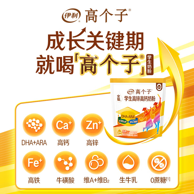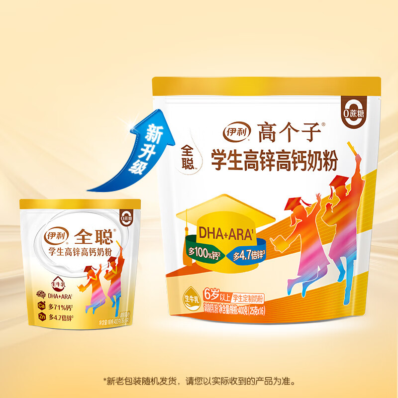 伊利青少年高锌高钙奶粉400g学生儿童成长营养小袋装牛奶粉助力
