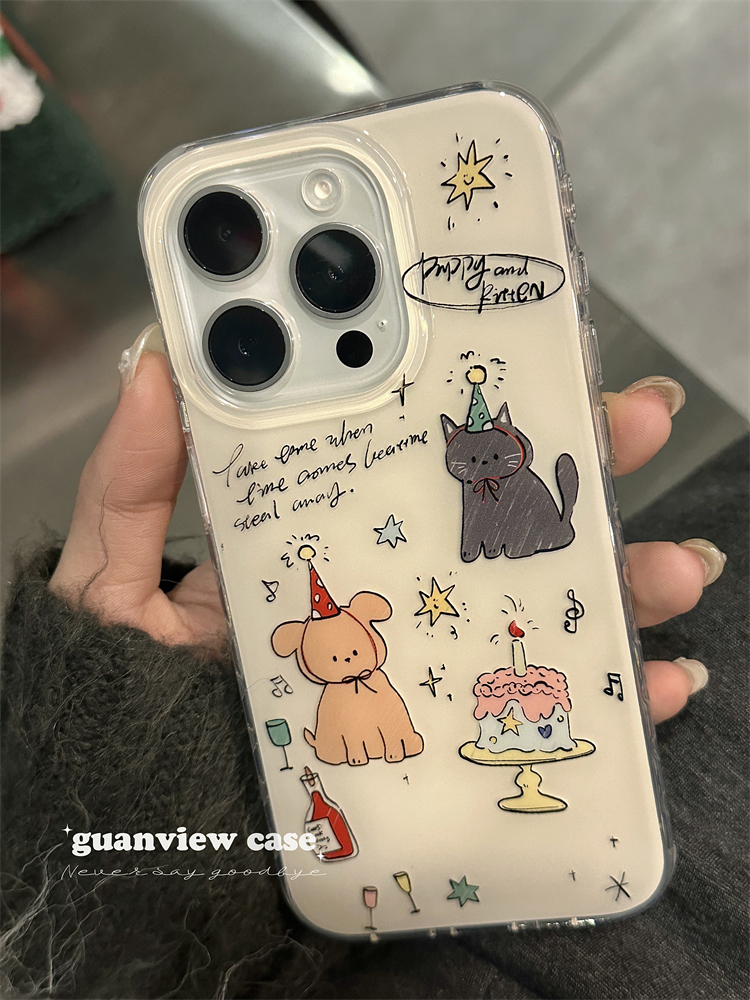 guanview 卡通治愈小猫小狗过生日适用iPhone17promax苹果16手机壳15全包边硅胶12软14可爱蛋糕13pro防摔套女