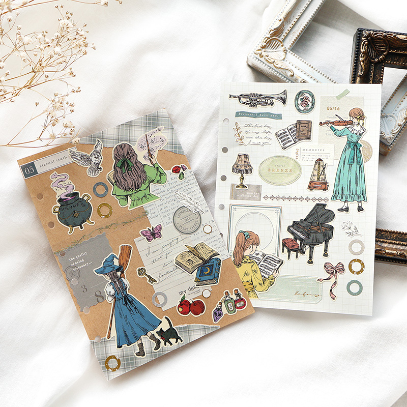 日本mind wave贴纸夜之宠儿系列复古色彩手绘女孩神秘星梦茶会海风色调低语魔女手帐日记相册拼贴素材贴画