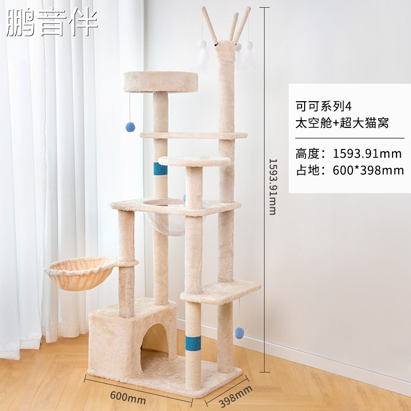 鹏音伴日本めいひん猫爬架一体猫抓板猫爬架子不占地太空舱立柱实木猫跳摆件饰品