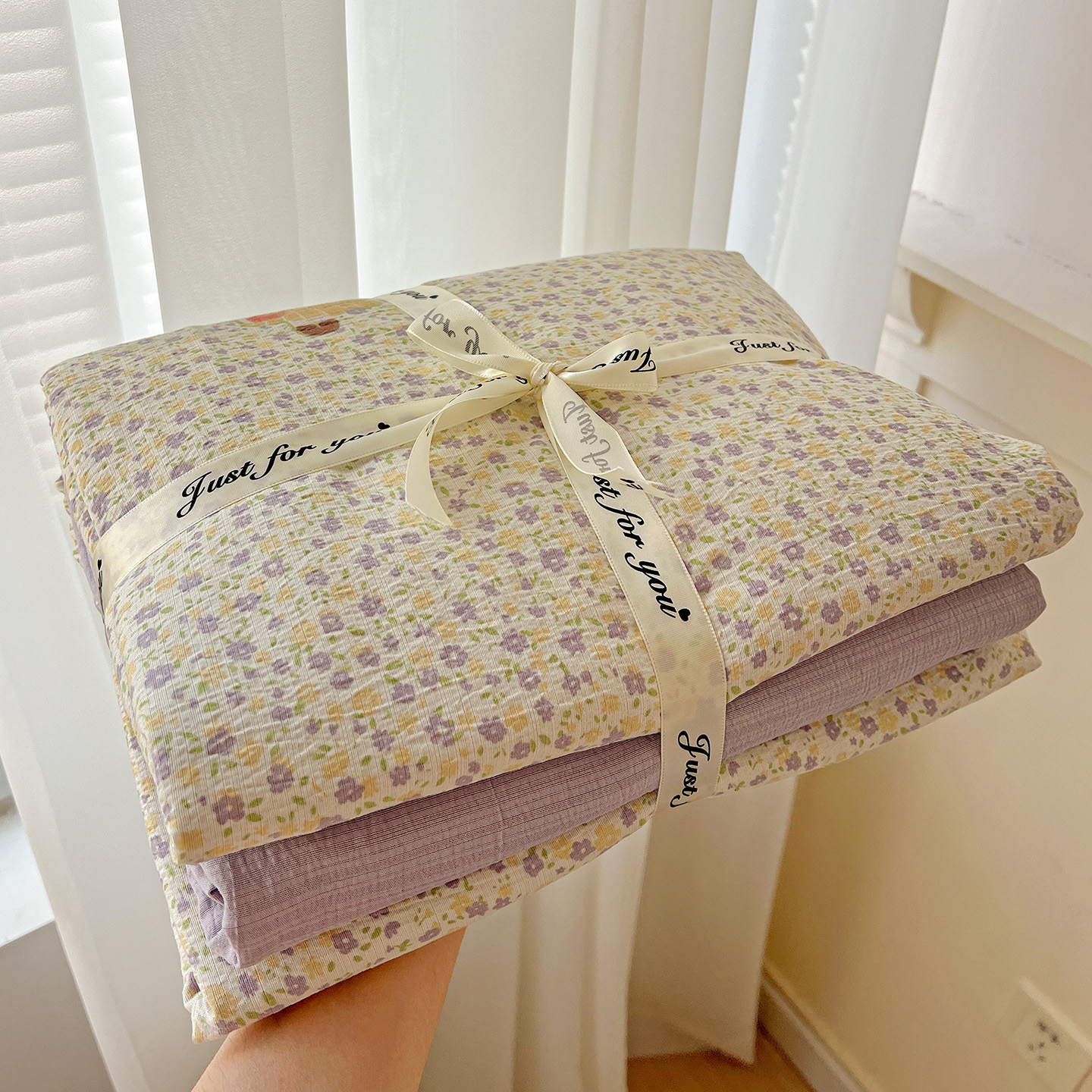 A类纯棉双层纱布四件套新款床上全棉被罩被套床单学生宿舍三件套4