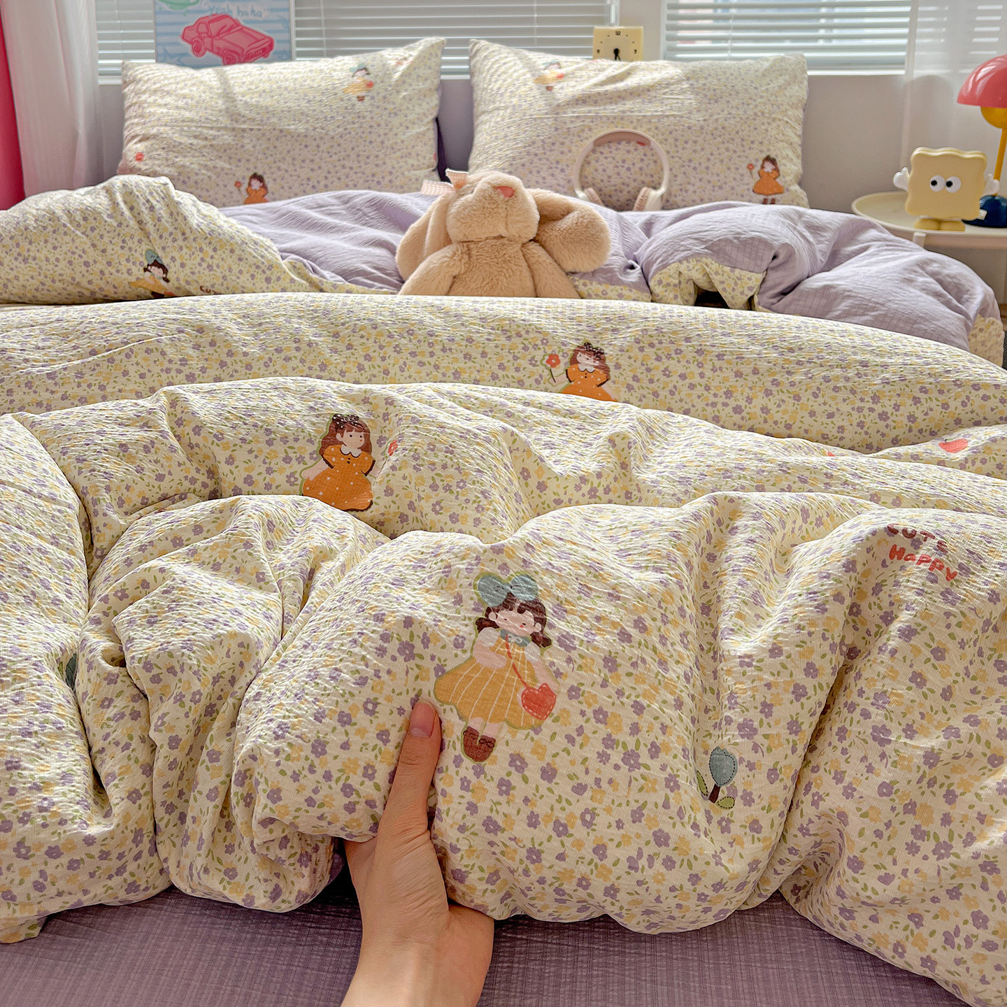 A类双层纱床上四件套纯棉全棉新款田园床单件被套被罩宿舍三件套4