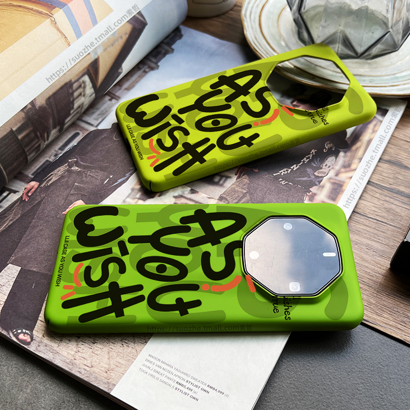 如你所愿适用于华为mate60rs非凡大师手机壳新款男女mate50保时捷小众个性创意涂鸦英文mt40rs黄色绿全包超薄