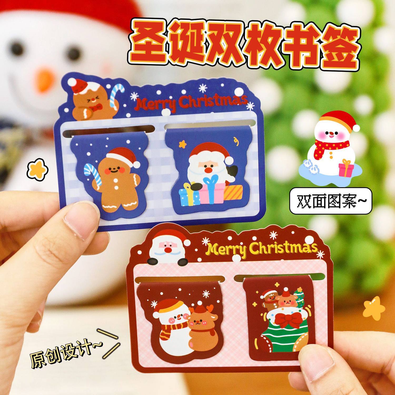 圣诞节磁性书签学生可爱异型双枚书页夹圣诞文具磁铁书签小礼品