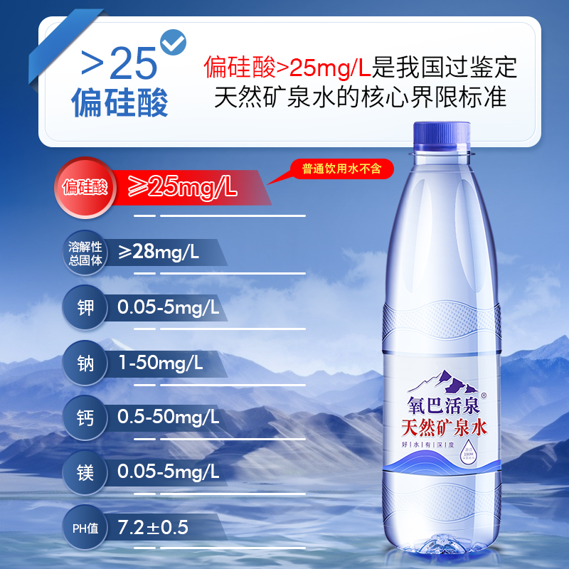 氧巴活泉天然矿泉水550ml*24瓶整箱装家庭饮用水含偏硅酸瓶装碱性